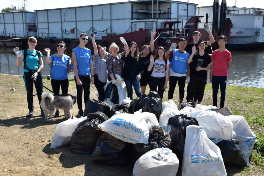 Акции по очистке берегов прошли и в районах. У Амура в селе Малышево Хабаровского района добровольцы собрали 25 кубометров отходов. А в селе Нижнетамбовское Комсомольского района отряд "Подсолнух" навел порядок на берегу сразу двух рек – Амура и Хальзана.