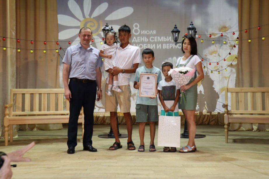 Жителей Бикинского района поздравил и.о главы администрации Андрей Будимиров. Он поблагодарил супругов Вакулиных, которые прожили вместе 25 лет, за сохранение семейных традиций и достойное воспитание детей, вручил им грамоту и медаль. Одновременно с медалью каждый из супругов получил значок в виде ромашки, которая является символом праздника.