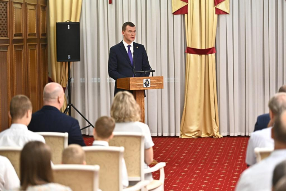 - Отдельная награда – медаль ордена «Родительская слава», которой в этом году указом Президента России удостоена хабаровская семья Хлонь, где подрастают сразу пять сыновей! – пояснил губернатор.