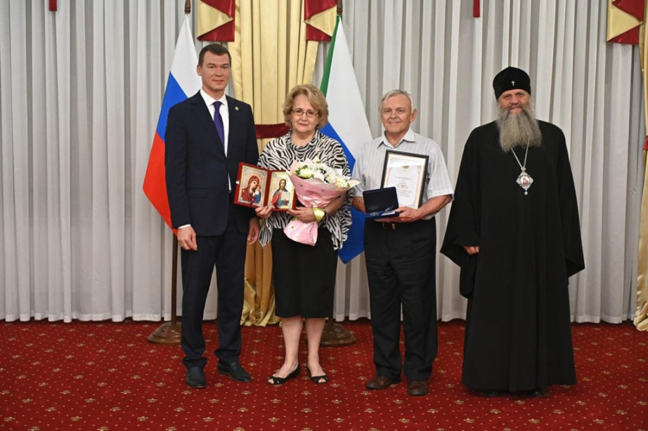 Губернатор Михаил Дегтярев поздравил жителей Хабаровского края с Днем любви, семьи и верности. В ходе торжественного мероприятия, приуроченного к новому празднику России, глава региона наградил семьи, являющиеся настоящим примером сохранения супружеских уз и достойного воспитания детей. В церемонии принял участие и митрополит Хабаровский и Приамурский Артемий.