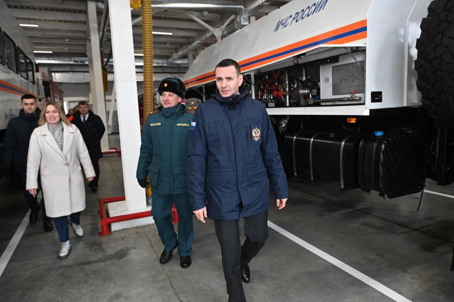 Губернатор Дмитрий Демешин и директор департамента ГИМС МЧС России Игорь Грязнов посетили подразделения спасательных служб в Хабаровске