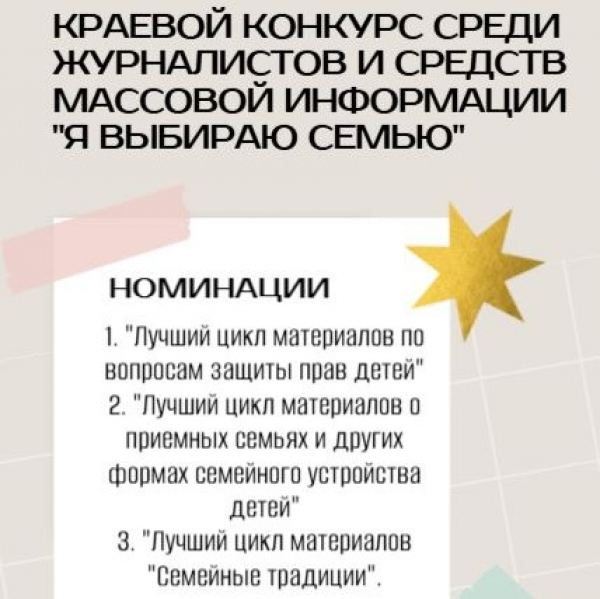 Представители СМИ могут принять участие в краевом конкурсе "Я выбираю семью"