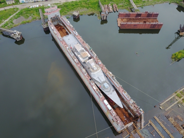 На Амурском судостроительном заводе состоялся вывод из цеха многоцелевого сторожевого корабля «Громкий»